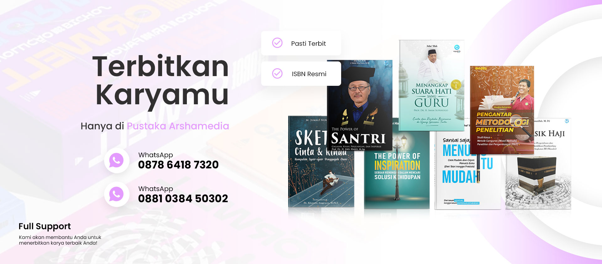 Hadir sebagai solusi untuk menjawab masalah anda dalam hal penulisan buku. Ratusan penulis sukses telah merasakan pelayanan konversi terbaik Pustaka Arshamedia.